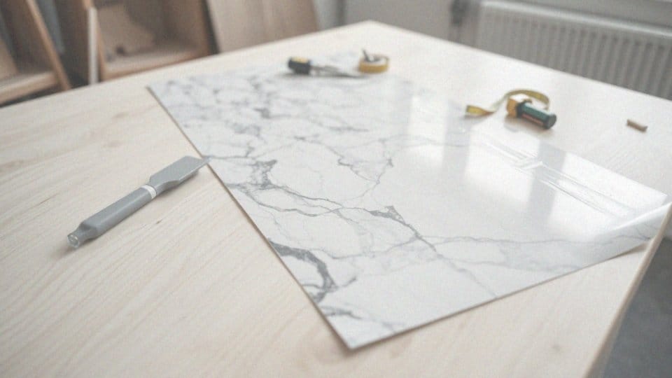 Aby skutecznie okleić laminowane blaty w kuchni, warto zacząć od starannego przygotowania powierzchni. Na początek dokładnie ją oczyść i odtłuść, eliminując wszelkie zabrudzenia oraz tłuste smugi.